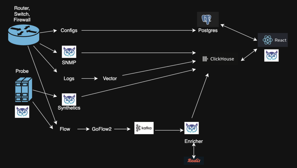 WhiteOwl brings together metrics, flow, logs, synthetics, and configurations into a single, coherent data pipeline. Each component is purpose-built, loosely coupled, and optimized for real-world enterprise environments.